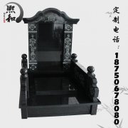 方形芝麻黑石雕墓碑香炉