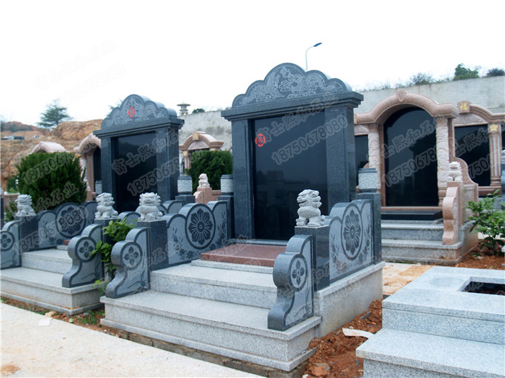 大型农村墓碑的制作最基本也是最重要的一个环节就是图纸设计。这个图纸设计既包括平面图纸还包括所用石材、效果图,虽然这样一套设计图的制作成本也不低,但是十分必要的。一套大型家族墓碑通常要用3种材料:芝麻黑、芝麻白、山西黑,山西黑石材的价格最昂贵。纯山西黑的大型家族墓碑造价不比盖一套房子便宜,也因此在一些非重要的地方,可采用其他石材代替,通过多种不同颜色的石材进行搭配,可以增加整套墓碑的层次感,同时能将一些重要的地方衬托地更加直观。