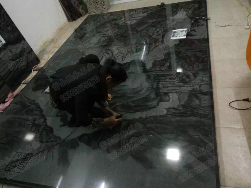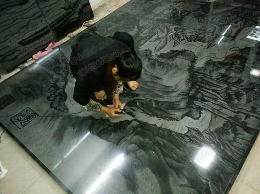 一个物品之所以被越来越多的人喜爱,必然是因为其在某些方面的特点迎和了人们的需要,影雕越来越得宠的原因也不外乎是这样的。在我们的现场观摩中发现影雕是利用比针还要细的钢钎工具依靠于雕刻师傅的腕力和雕刻经验对细节和光线的处理,在光滑的墨色石材上进行雕刻。与其传统的平面绘画的形式相类似,也就是说影雕的具有着平面绘画所有的特点和展示基础。大家都知道,我们手绘的绘画在实际的使用中会氧化,时间长了会变得很模糊,即使是现在有高超的摄影技术和图片修复技术,但是也会随着时间的推移慢慢淡化模糊甚至是丢失,很多珍贵的画面没有办法保存数十年甚至是上百年,影雕的出现正好弥补了这一缺点,特别是彩色影雕技艺的出现补足了黑白影雕的缺点。
