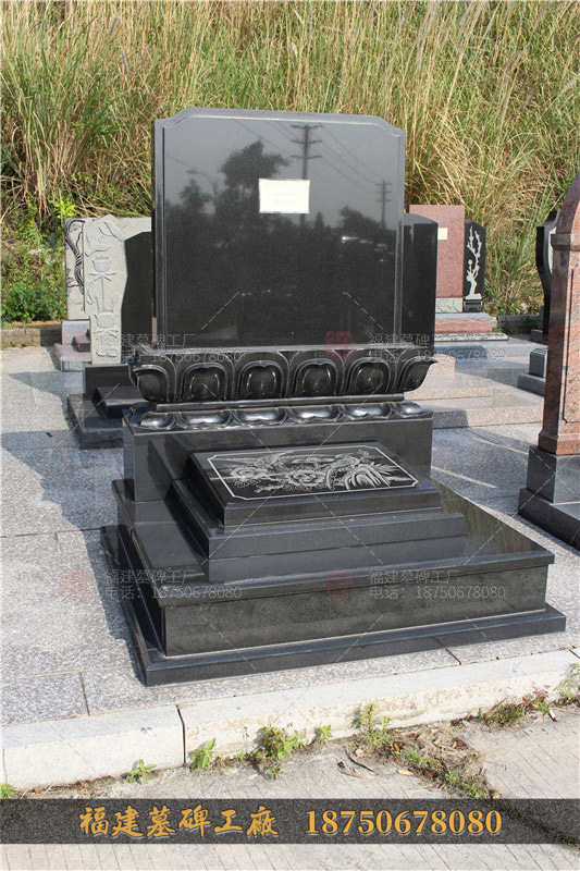 黑色花岗岩一般用的材质是山西黑和芝麻黑石材,也有一些其他的黑色石材比如:印度黑、蒙古黑。山西黑墓碑是山西地区矿采的墓碑,外面颜色为黑色,顾名思义山西黑石材,福建厂家使用山西黑制作墓碑较多,在质量工艺上也是其他地方无法匹及的。