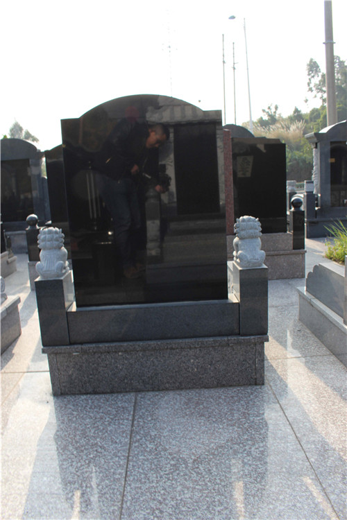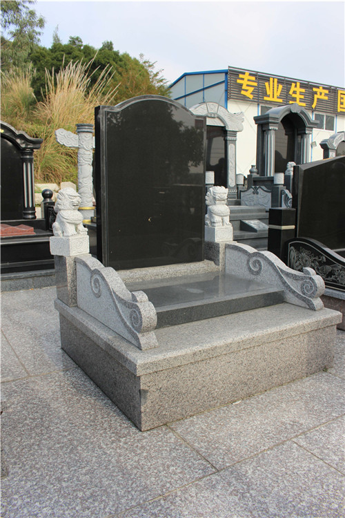 一套山西黑墓碑的主要组成部件有碑板、碑顶、碑柱、栏板、盖板、围板、其他配套部件等等。碑板是最核心的部件,是必不可少的。逝者有关的信息内容以碑文的形式在碑板上呈现;碑顶不一定在所有墓碑的款式中大多数艺术墓碑是没有碑顶的,传统式墓碑的碑顶通常全是以瓦盖或是别的机盖的款式出現;碑柱通常就是指碑板两边的柱头,或许一些款式非常复杂的墓碑会有多对碑柱。同样,这一部分大多数艺术墓碑没有呈现;顾名思义,栏杆板是墓碑背面两侧的栏杆,一般雕刻形式以线雕和浮雕居多;作为放置骨灰盒上部穴位的遮挡,盖板可根据单穴和双穴配置一块或多块;围板是指垂直设置在墓碑底端支撑整个墓碑结构的规格板;其他支撑部件:如栅栏柱、一般圆形球柱、狮子柱等。握鼓,通常放置在半圆形石雕栅栏板的前端;地板、台阶、栏杆等。由此可见一套墓碑真的没有那么简单,所需要的石材制度各方面必须满足雕刻需求。