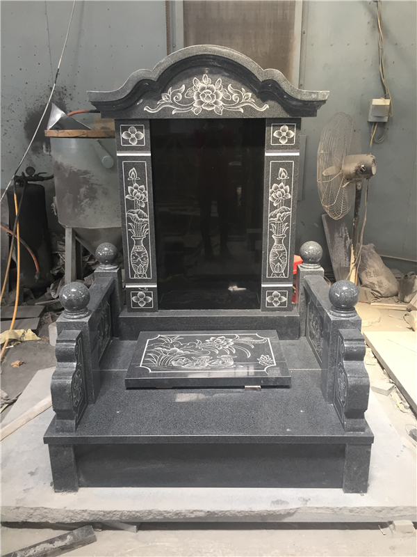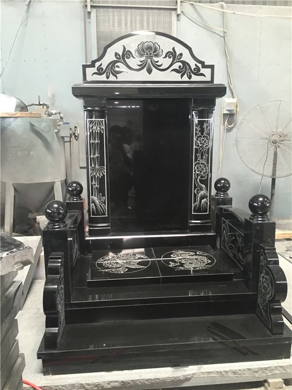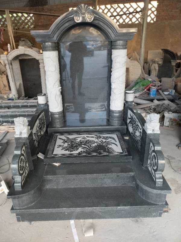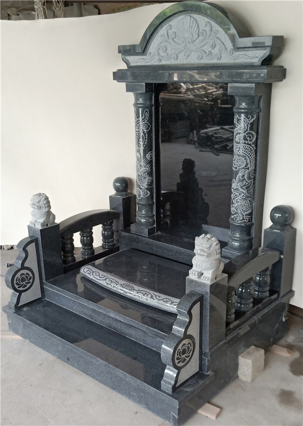 山西黑墓碑款式(线雕盖板、栏板、抱鼓、碑柱)