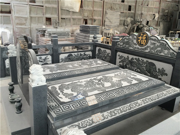 福建中式传统墓碑质量工艺精湛,通常带有典型的民族文化特色,这种特色体现在墓碑的外观造型,规格尺寸甚至每一个部件上,花草树木,龙飞凤舞,梅兰竹菊,各种几何形状,这些元素共同构造了中式墓碑。中国地大物博,才人辈出,那些天上飞的、水里游的、地上跑的、静物或者活物,现实或者神话,只要你能想象得出来的图案,都可以在墓碑的雕花上实现出来。当然,这些图案并不是谁拍脑袋想象出来的,而是每一种图案都有其背后的寓意所在。