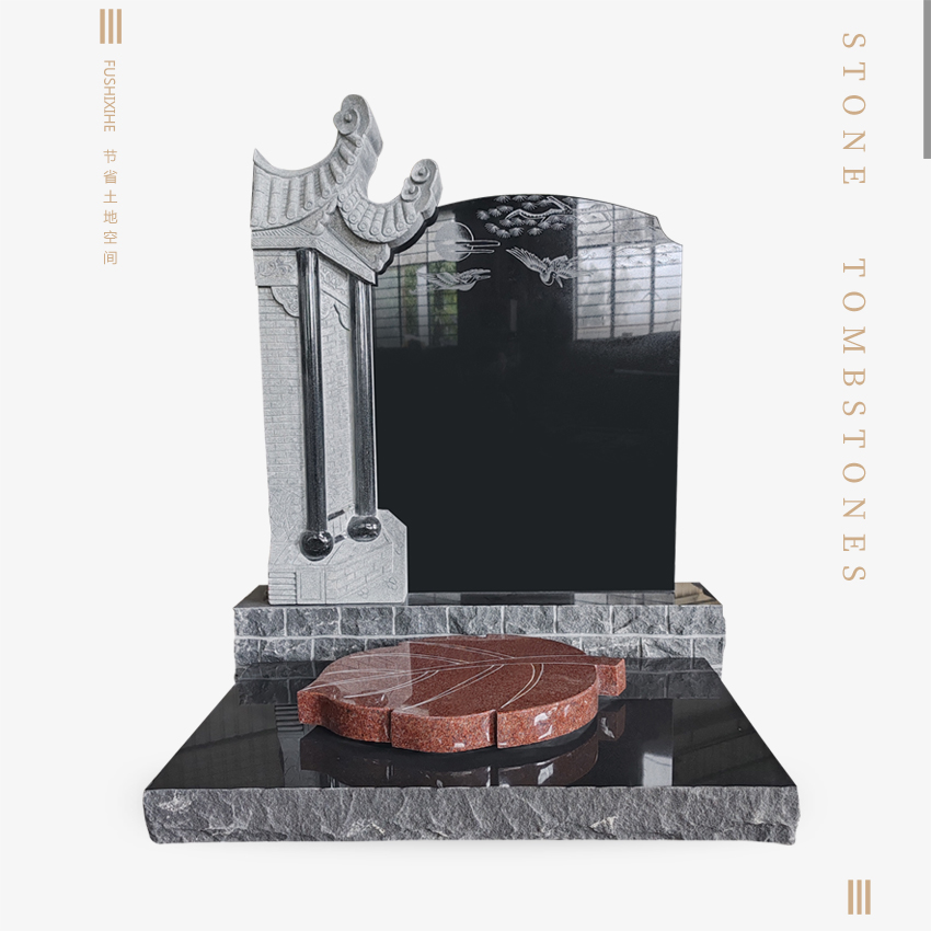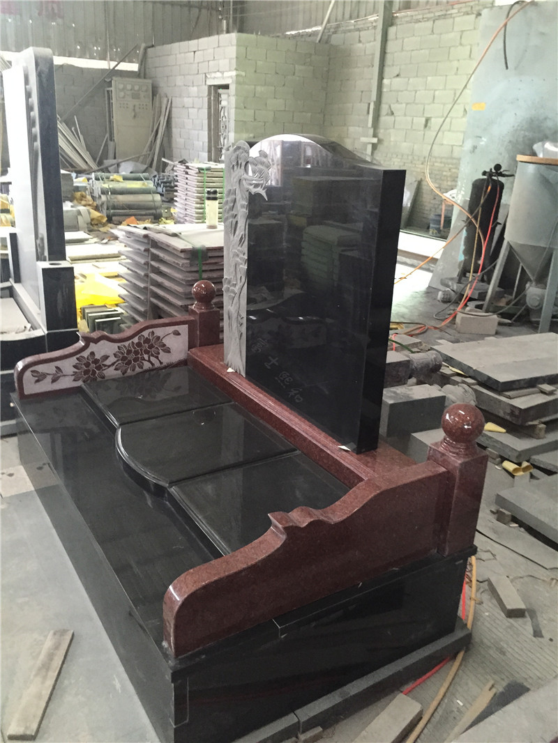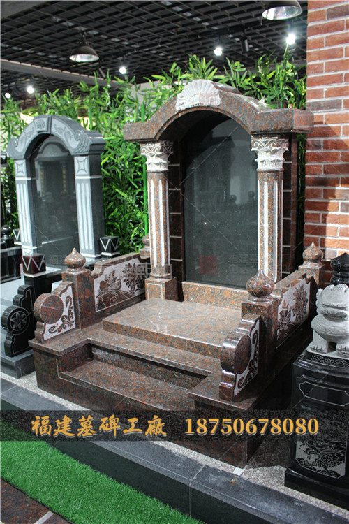 红色墓碑突破传统观念,采用印度红、芝麻黑等花岗岩,搭配影...