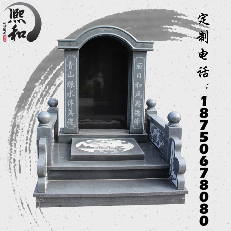 形式,在中国大多数区域客户选择的非常多。材料上是芝麻黑加山西黑的经典材质搭配,山西黑与芝麻黑为主碑板,盖板与围板为山西黑。