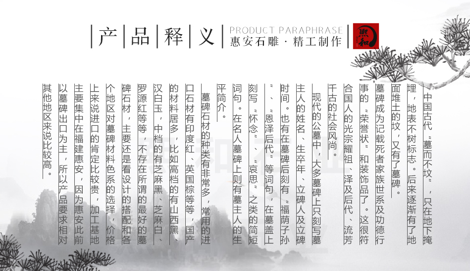 整体造型设计非常和谐统一,整体美观度极佳。当然,这些碑型也是我们结合前人的智慧和客户对于传统文化寄托的需求,不断的深化和优化得到的成果,希望以此给逝者最好的归宿。