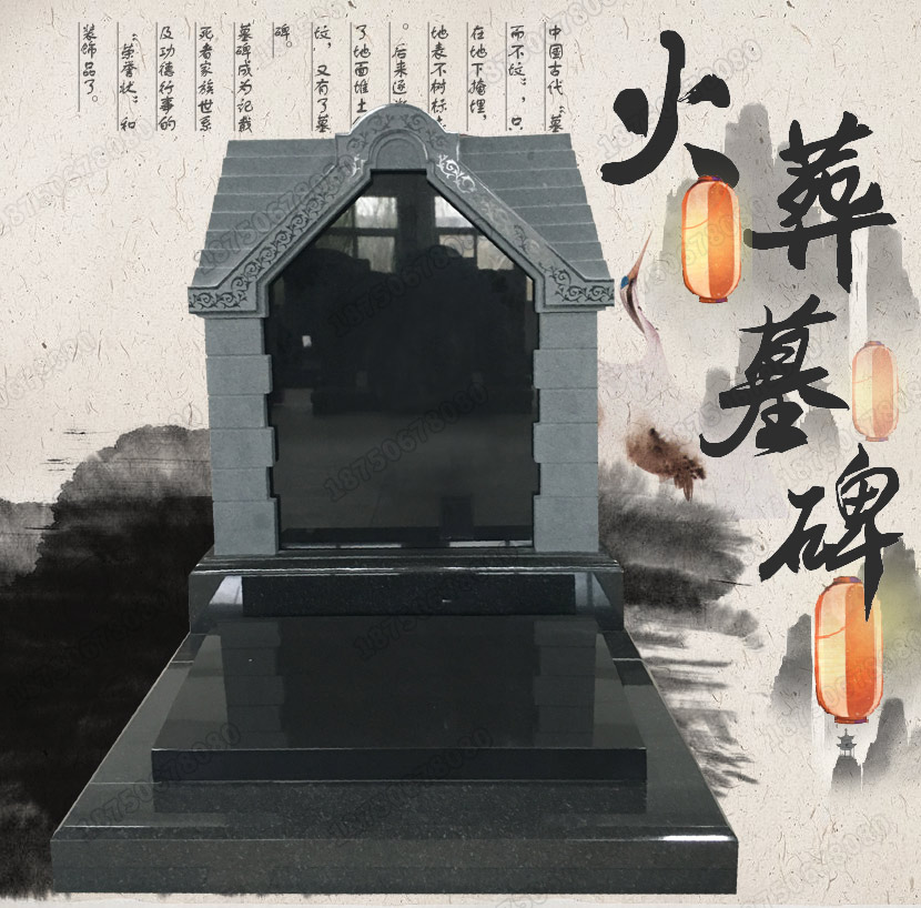 新中式墓碑样式 印度黑珍珠黑火葬碑 惠安墓碑厂