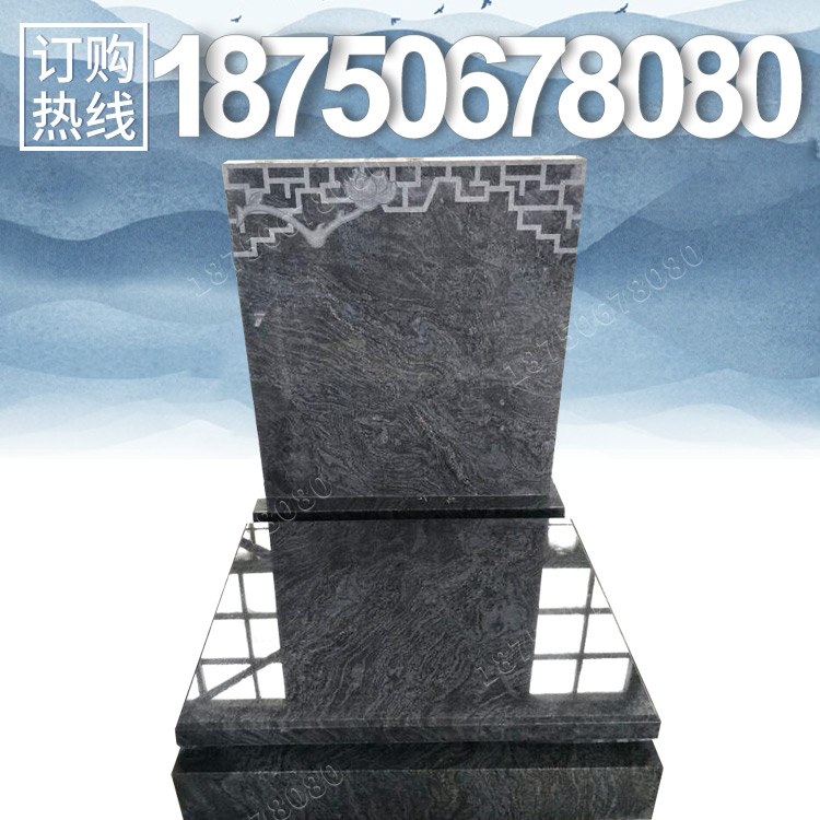 这款墓碑的材质比较特别,是浪淘沙的染色版加工而成的,主要是现在因为G654价格飞涨,导致很多人开始需要用可以替代G654石材的墓碑材料,浪淘沙是非常适合加工墓碑的,因为流沙一样的线条纹路,让人有一种时光飞逝的感觉,也有一种黑色的忧郁,并且坚韧度和抛光度都可以达到要求,加上相对比较便宜的石料价格,所以非常符合墓碑加工的材料品质。
