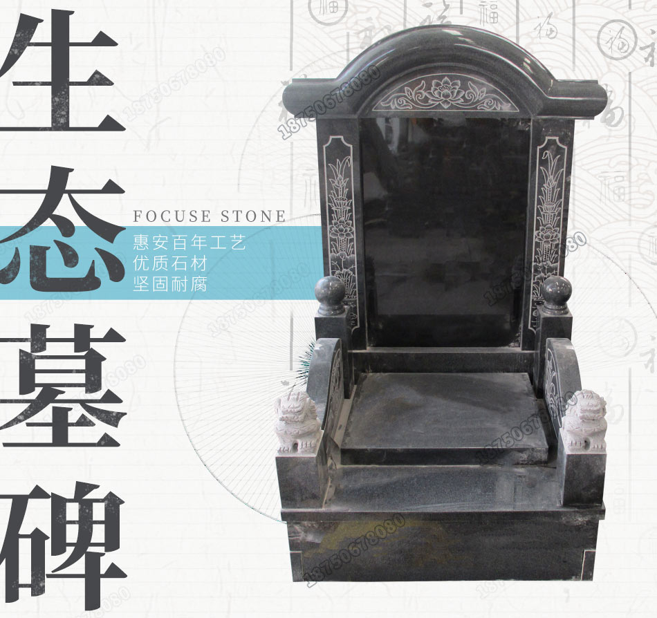 墓碑是安葬逝者地方,大多数人都很重视自己生命结束后会葬在什么地方,及墓碑样式。农村墓碑是款式多样,是我国各个时期墓碑的缩影。常见的农村墓碑样式主要有传统墓碑和艺术墓碑。传统墓碑以其富有传统文化内涵的造型和雕刻而受到人们的欢迎,特别是具有瓦房元素的传统墓碑,更是一直以来都占据市场的主流,以瓦盖、砖瓦等具有瓦房的元素寓意为逝者安息之所,即使是如今墓碑逐渐往节地生态发展的当下,具有瓦房元素的传统墓碑仍然不会落伍。艺术墓碑则是以突出逝者喜好个性为主,占地面积小,工艺讲究。