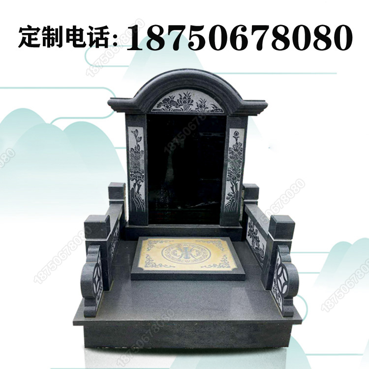 此款墓碑为传统结构,整体造型层次分明,整体雕刻细节把控很好,材质使用的是经典的印度黑和654的搭配,由碑顶、碑柱、主碑板、栏杆、盖板、抱鼓石、底座等拼装而成。现代墓碑设计不单单是款式上的选择,一个好的墓碑厂家也是很重要的。石雕墓碑在制作的时候是按每个部件分开制作的,厂家制作工艺的优劣就在细节上呈现的很明显,墓碑各部件是否能够完全相符,整体拼接起来是否完美,就要看雕刻石匠的手艺了。