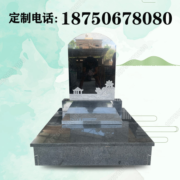 此款墓碑占地面积为99*99,雕刻简约大气,深含文化内涵,整体使用花岗岩石材雕刻(印度黑和654石材)展现出浓浓的现代个性化艺术风格,其中饱含生者对逝者的尊重和缅怀。