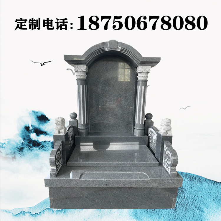 这款墓碑占地尺寸为119*90,碑顶采用屋檐式造型,把所有我们能设计到的传统墓碑的元素都给设计了,一款简单大气墓碑造型就呈现在眼前,多数的新中式文化墓碑中所需要的元素也都包括了进去。传统墓碑能够很好的诠释出传统文化的魅力,寄予着我们对逝者的思念也是对传统文化的偏爱。栏板部分采用的是花鸟造型的雕刻画卷,前柱使用石雕狮子,寓意生生不息、 家族繁衍、社会繁荣。富士熙和墓碑厂家用成熟的雕刻工艺,用匠心雕刻每一个细节。