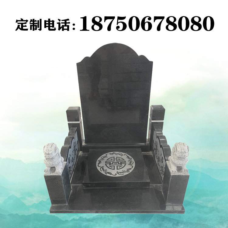 农村墓碑以深色石材为主,更显庄严。单单一套传统碑就可能用到圆雕、线雕、浮雕、影雕等多重工艺,主要是传统墓碑融入了许多传统文化元素,使得雕刻图案呈现出如画般艺术效果,增添墓碑的艺术欣赏效果和文化纪念意义。此款墓碑是新型的农村传统墓碑样式,采用印度黑和珍珠黑石材雕刻,占地80*72,价格在2k左右,在其栏板盖板部分采用了线雕的雕刻技法,刻画出了竹子、梅花、吉祥结等图案,宛如一幅幅图画印在墓碑表面上,使墓碑看上去更加美观、华丽。