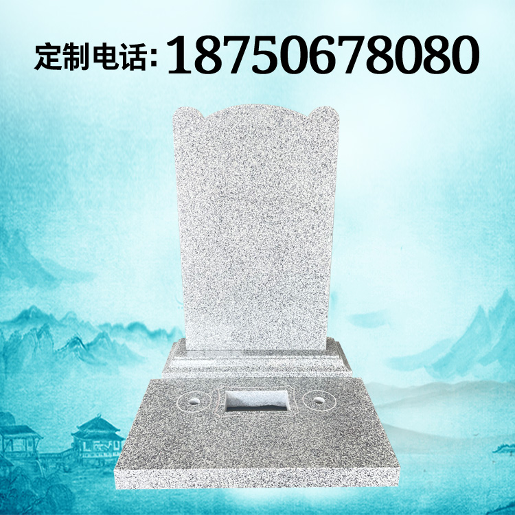 芝麻白是著名的花岗岩石种之一,是墓碑行业的主要原材料,不易风化腐蚀,产量也其他石种多很多,性价比很高可以应用于很多方面,芝麻白花岗岩分为细花、中花、和粗花,在制作的到时候如果是主碑板,则使用细花的芝麻白是比较好的。人们可以用它来定制一款能凸显逝者个人特质的墓碑,从而加深逝者生前给亲朋留下的美好印象,从而减轻逝者亲友悲痛的心情,让后世记得逝者的好。这款墓碑占地为72*40,整体采用芝麻白加工而成,根据逝者的喜好设计墓碑的款式,简单不失大气,碑板以光面的处理方式,在阳光的照射下绚丽多彩,十分醒目。