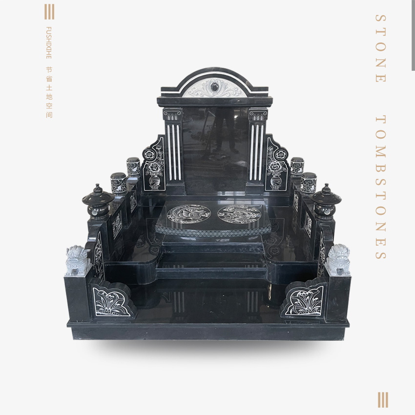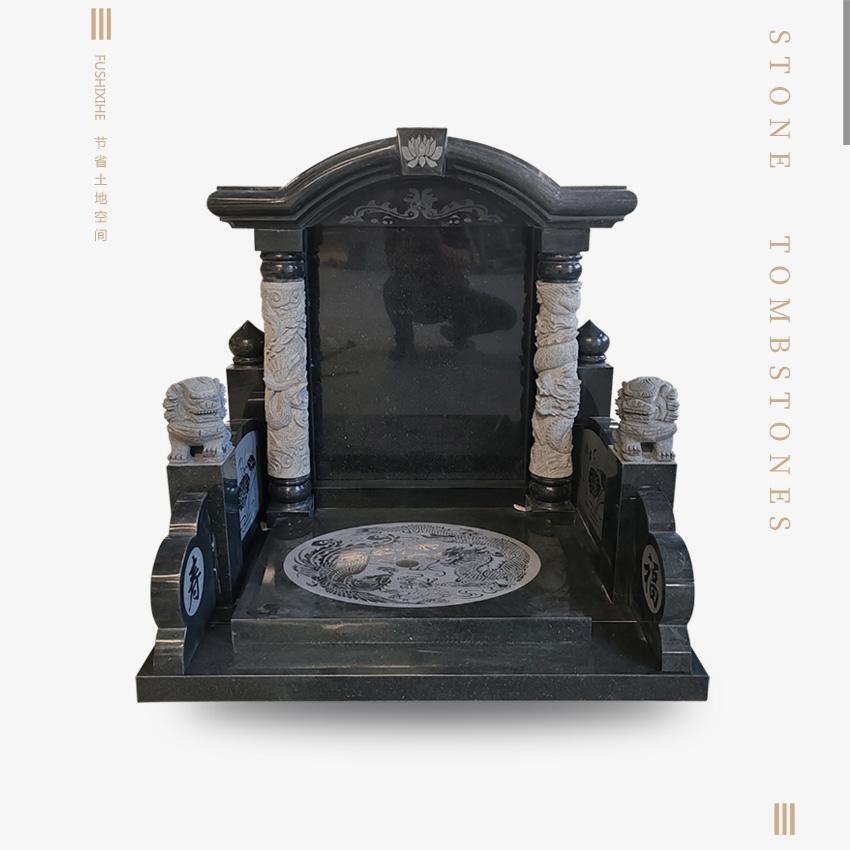 印度黑高档庄严肃穆墓碑 120x120规格 雕刻莲花石狮子设计