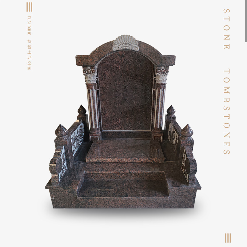 这是一款具有传统元素的墓石雕刻,整体采用英国棕花岗岩石材...