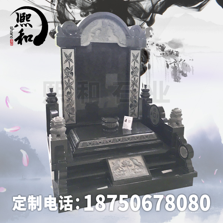 此款黑棕艺术石雕墓碑,主碑板雕刻花鸟浮雕,大气不是稳重...