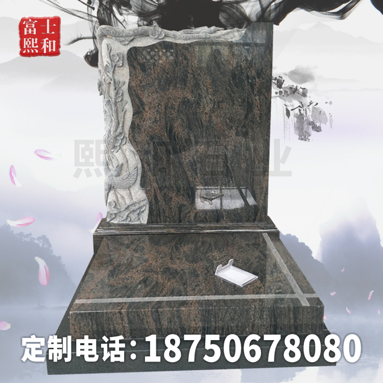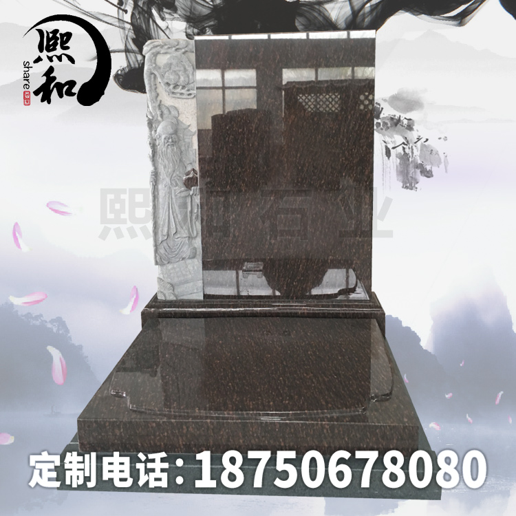 富士熙和 黑棕浮雕艺术墓碑 造型简单独特 厂家直供