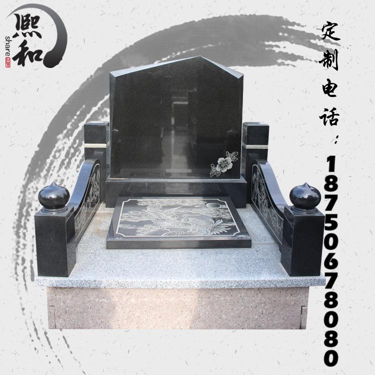 富士熙和厂家直销 定制墓碑 山西黑石雕墓碑 简单素雅
