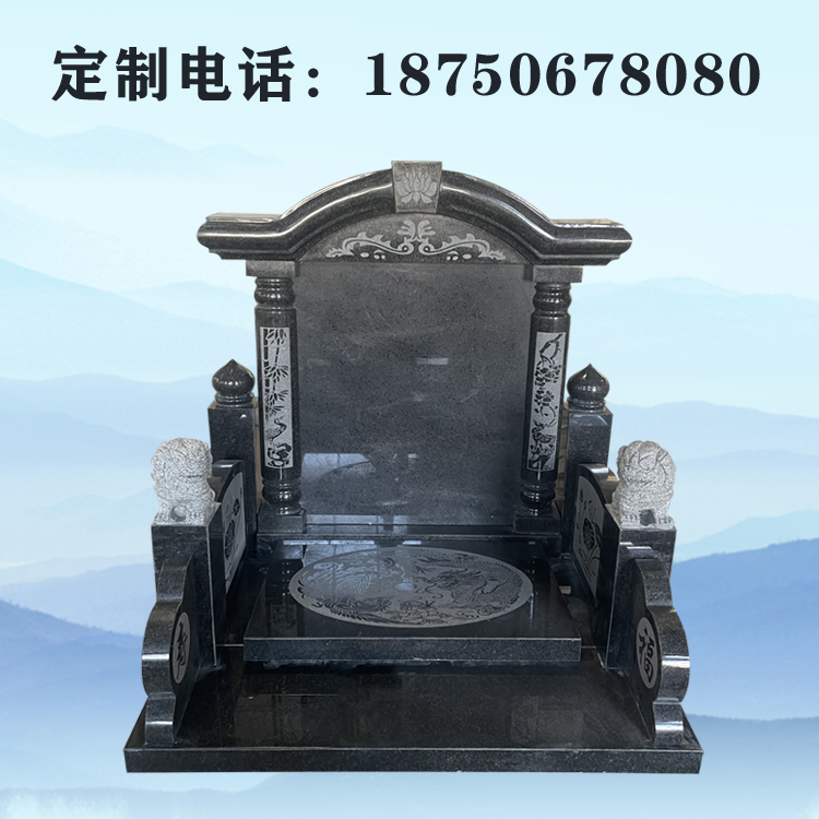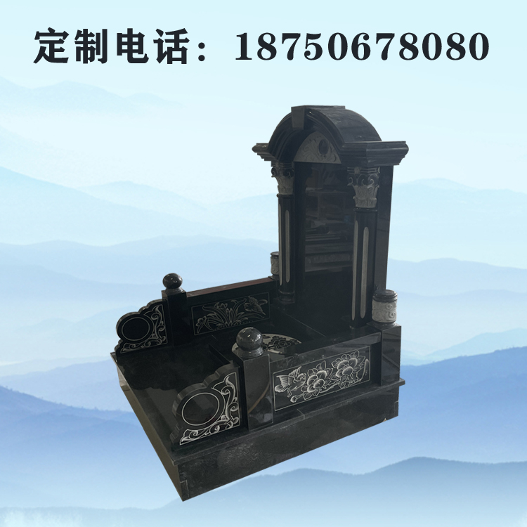 新式墓碑款式图 珍珠黑石材雕刻 100*80厂家定制多种规格