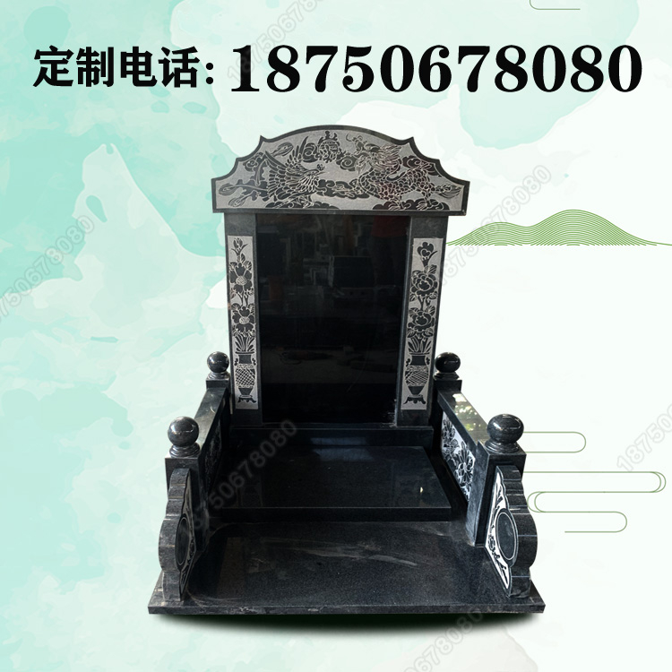 这款墓碑采用优质的山西黑石材搭配芝麻黑石材雕刻而成的 火葬...