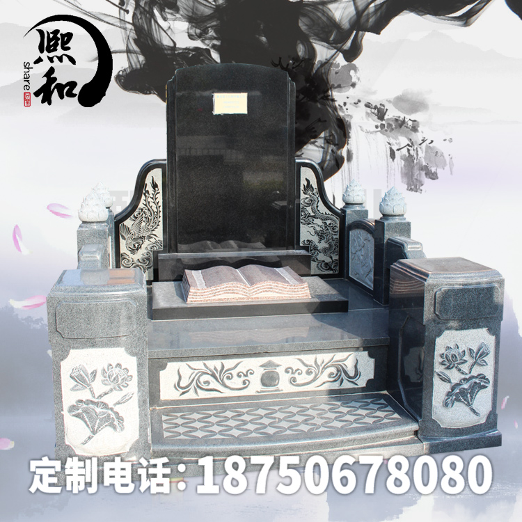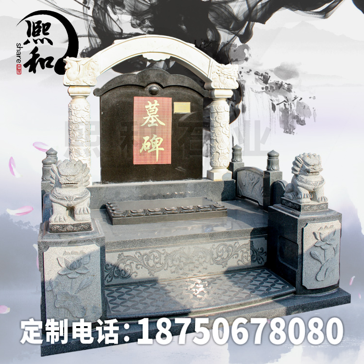 芝麻黑传统造型石雕墓碑 雕刻精美