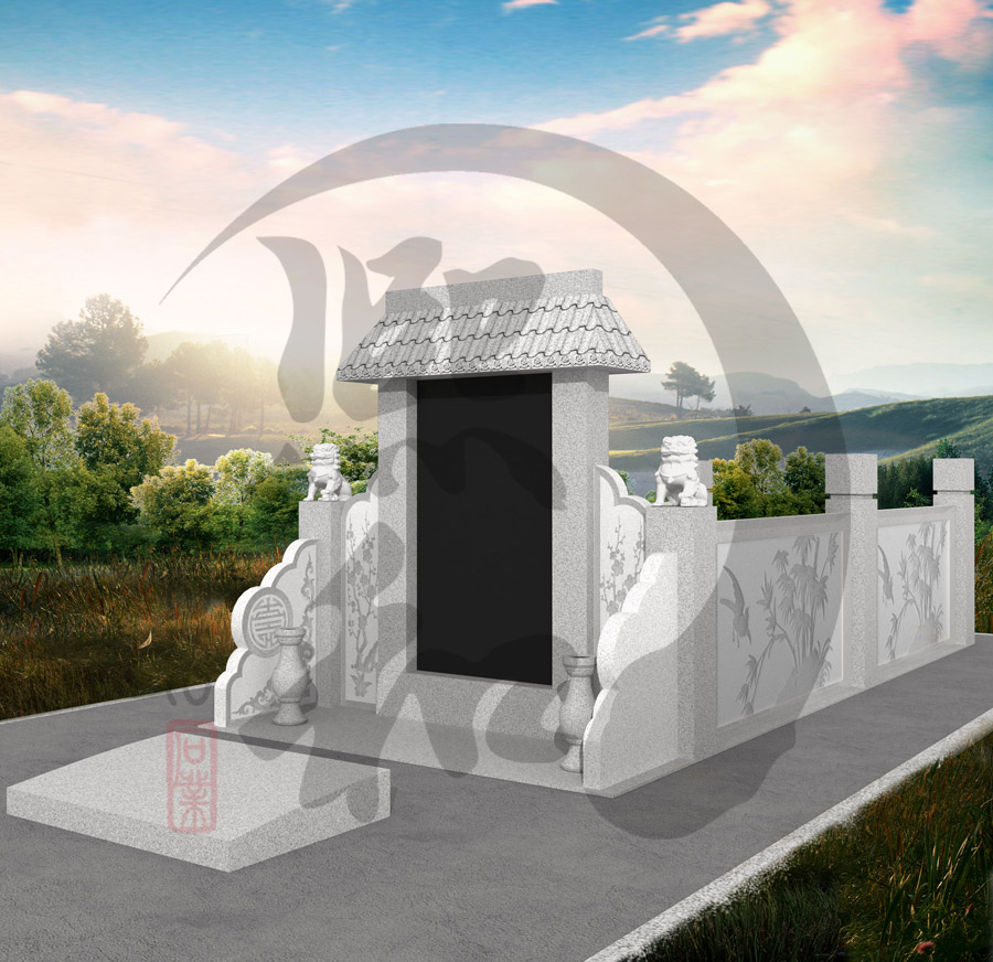 芝麻白碑围 栏杆 黑色主碑板 土葬墓碑