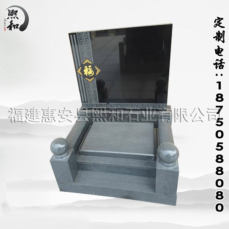 简单款山西黑墓碑 碑围雕刻金福字样 简单大气