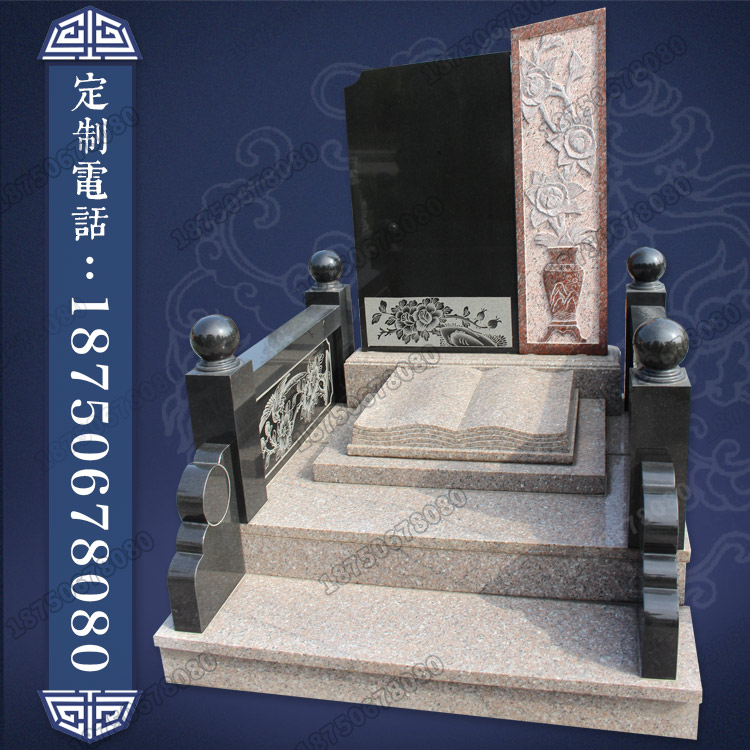 为艺术墓碑的创新,主碑板为山西黑与印度红的想拼接而成,并搭有线雕和浮雕工艺,栏板也采用线雕花鸟的纹饰,寄予了美好的寓意。