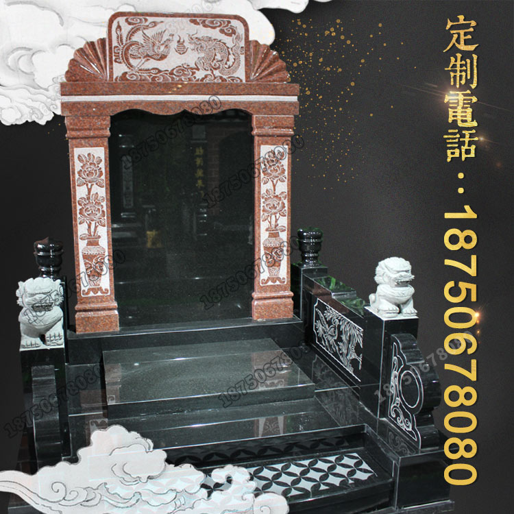 款式,在中国大多数区域客户选择的非常多。主碑板是山西黑石材,其他部件搭配印度红花岗岩石材。