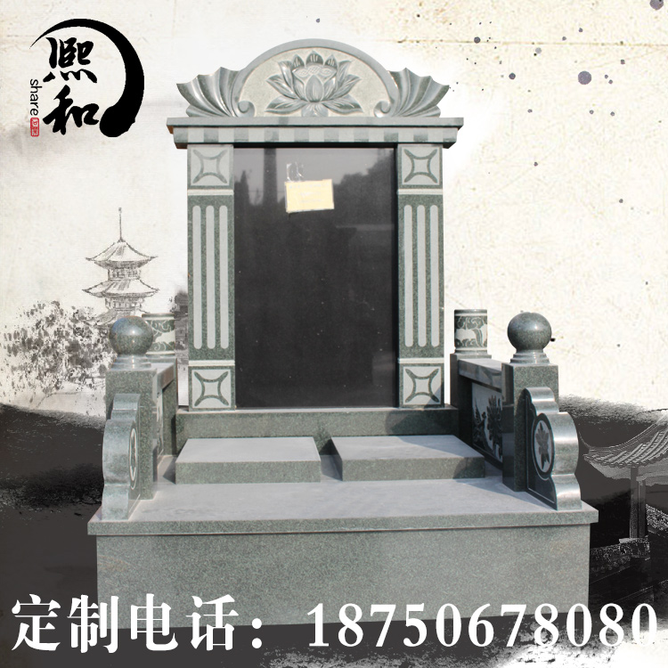 大 致高1.63,宽1.1米,长1.2米墓碑。主碑板两侧方形柱子上边放置圆柱形雕花柱子。主碑板与栏板相上使用的是圆形万年青竹子。整体造型设计非常和谐 统一,整体美观度极佳。当然,这些碑型也是我们结合前人的智慧和客户对于传统文化寄托的需求,不断的深化和优化得到的成果,希望以此给逝者最好的归宿。