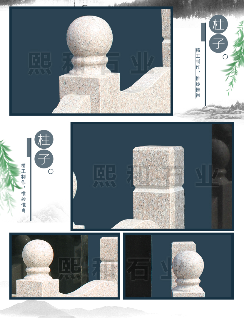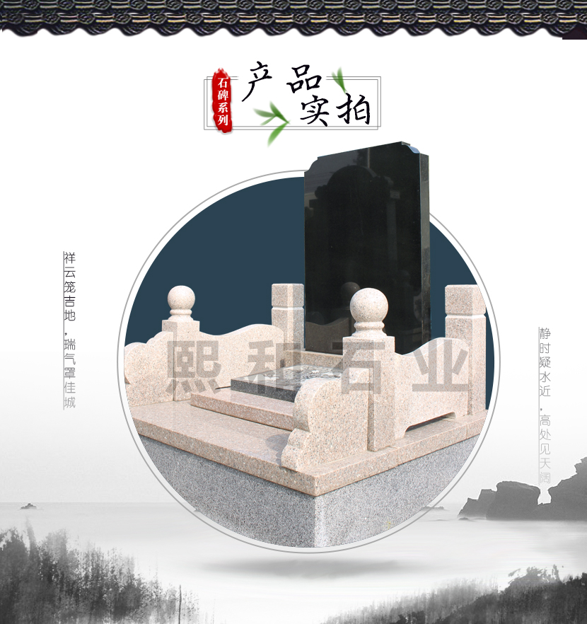 其中,主碑板、盖板和栏板都是使用山西黑,其他部件均为芝麻白。