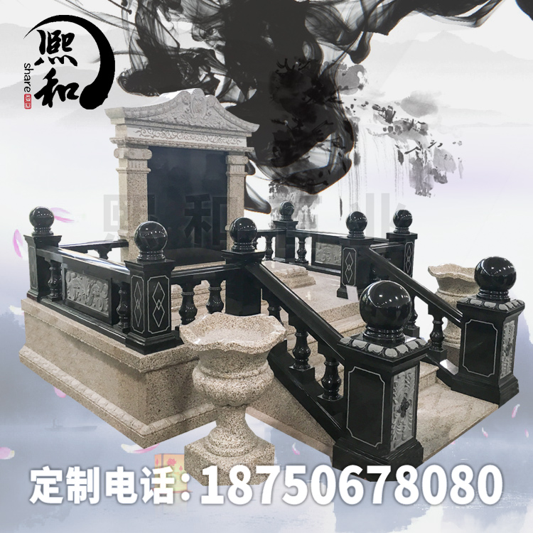 大 致高1.5,长1.8米,宽1.6米墓碑。主碑板两侧方形柱子上盖板为泉州白石材,整体简单无图案。整体栏杆由花瓶形状相连而成,楼梯由泉州白石材雕刻而 成整体造型设计非常和谐统一,整 体美观度极佳。当然,这些碑型也是我们结合前人的智慧和客户对于传统文化寄托的需求,不断的深化和优化得到的成果,希望以此给逝者最好的归宿。