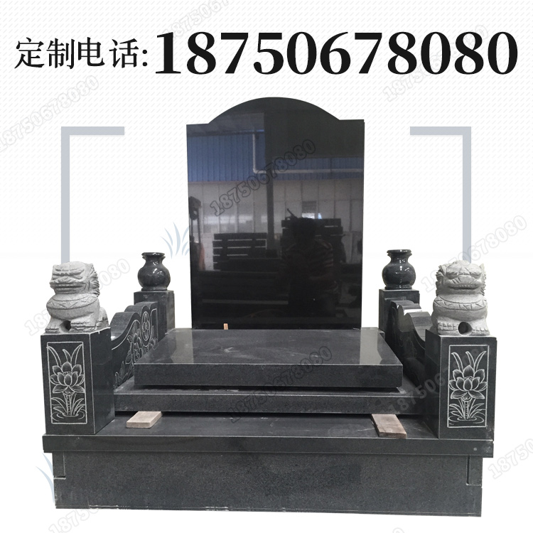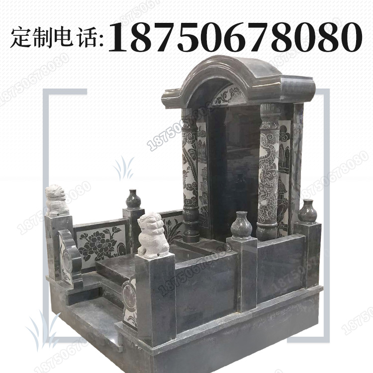 这是一款芝麻黑和山西黑石材相结合的中式豪华传统 火葬墓碑...