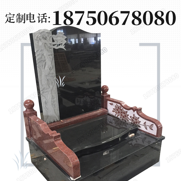 本产品是一款豪华双人墓碑,主要采用的是山西黑、和印度红材...