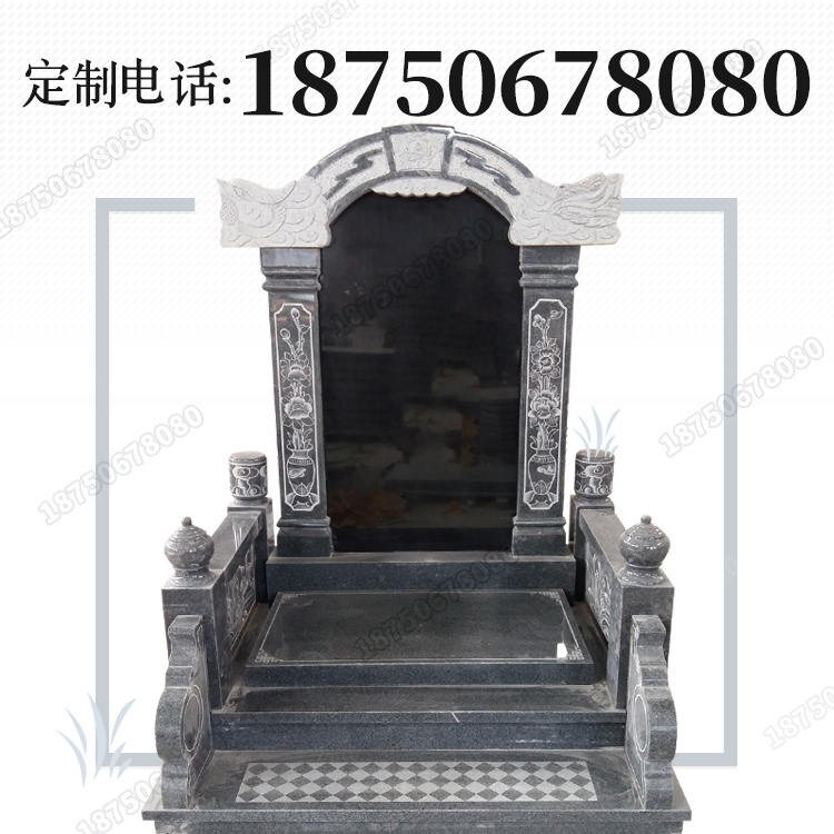 这是一款芝麻黑和山西黑石材相结合的中式豪华传统 火葬墓碑...
