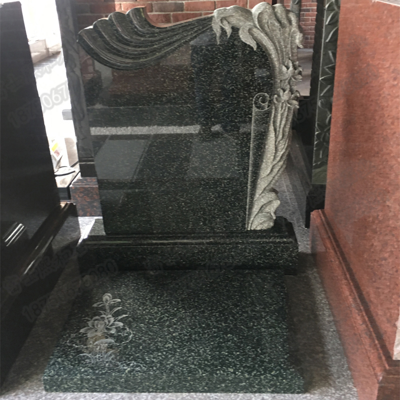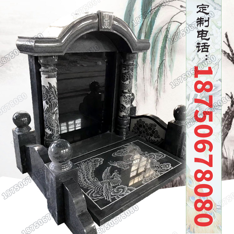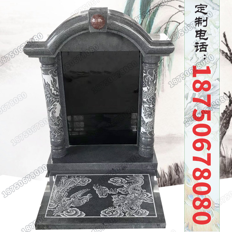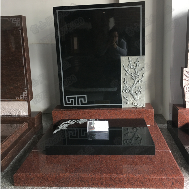 我厂雕刻的这款石雕艺术火葬墓碑选用优质的山西黑和印度红花...