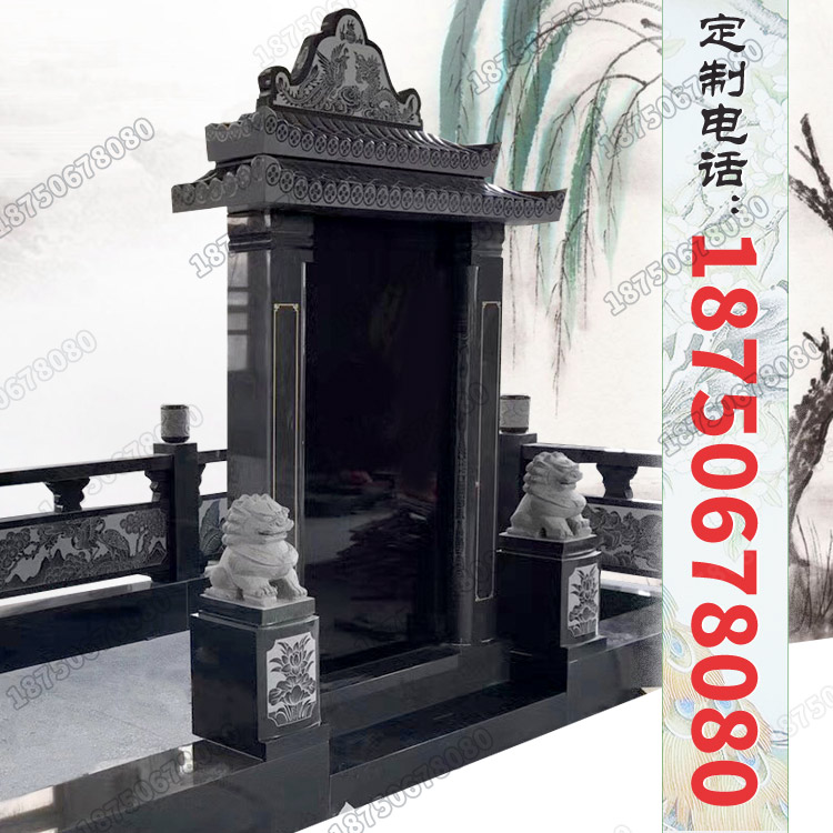 这套墓碑为全山西黑是材雕刻的中高档豪华家族墓碑,整套墓碑...