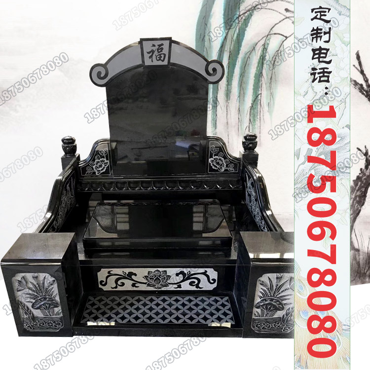 这款墓碑采用全山西黑石材雕刻而成,系我国墓碑市场上的中高...