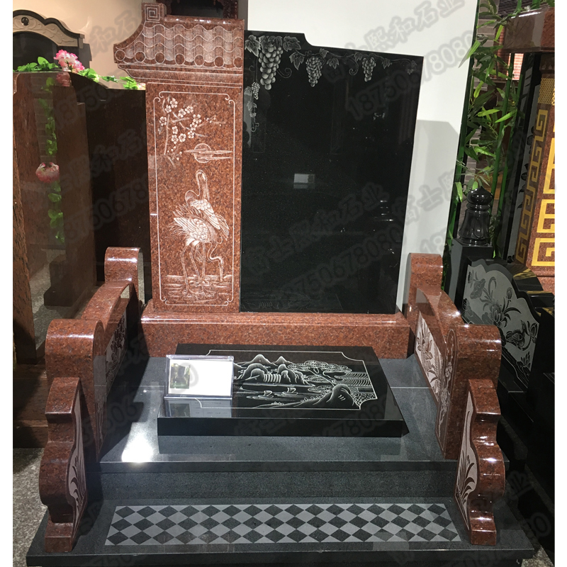 我厂雕刻的这套火葬墓碑采用优质的印度红花岗岩石材定制,款...