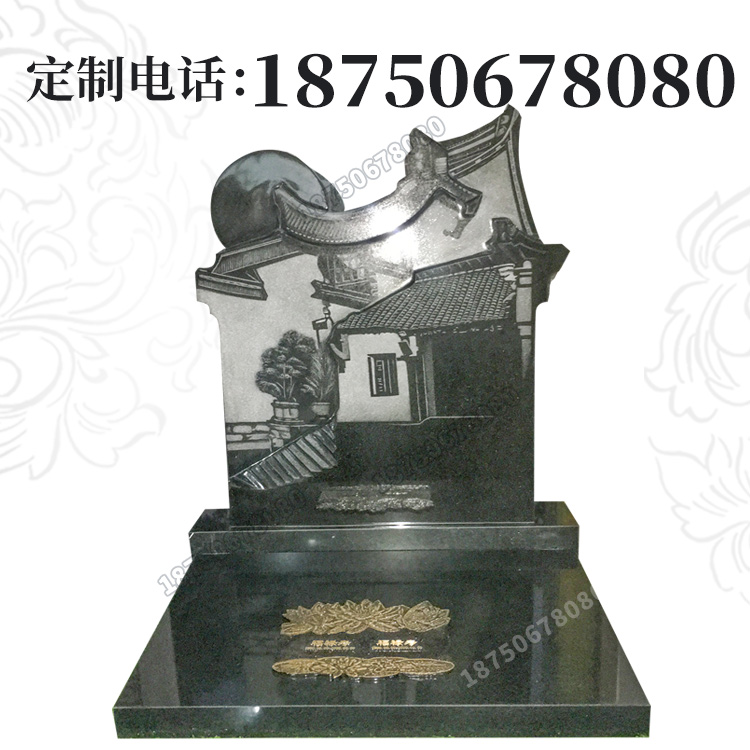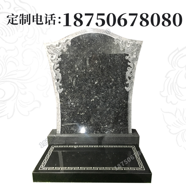 此款中式石雕墓碑整体采用优质山西黑石材雕刻而成,墓碑造型...