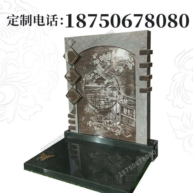 此款石雕墓碑由山西黑和猫眼石搭配雕刻而成,样式、材质、工...