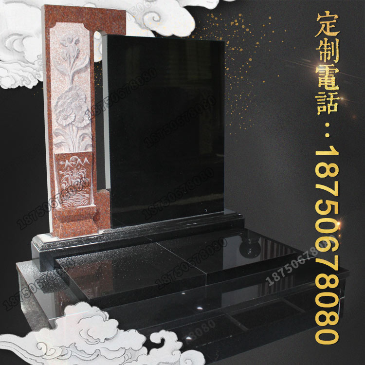 其中,主碑板、盖板使用深色系花岗岩,和中国传统墓碑要求的庄重肃穆相契合。瓦盖盖采用中式屋檐款式细致流畅,碑耳碑柱为线雕花草,盖板雕刻印花,当然这些图案和内容可根据客户当地风俗及要求进行优化。