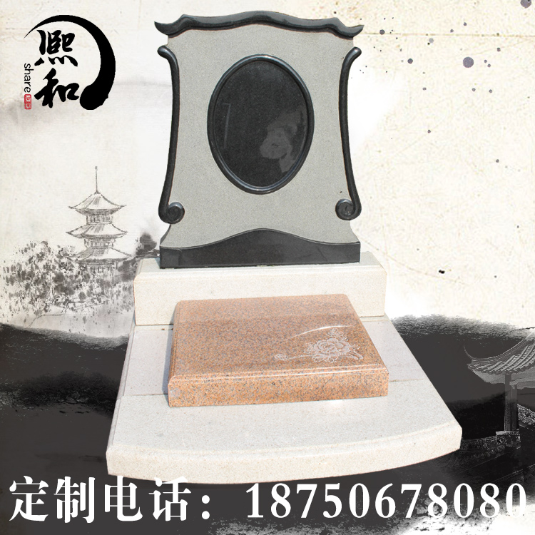 墓碑所使用的材料是最常用 的主碑板山西黑,盖板印度红结合。碑板为山西黑宽0.6米高0.8米组成,主要 用来雕刻碑文。碑板上造型类似于一面镜子。盖板由印度红石材雕刻而成,样式简单雕刻花朵。款式 简单素雅,庄重大方。底座也是有芝麻黑石材雕刻而成。该款墓碑大致长0.9米,宽0.9米,高1.1米。整体造型设计非常和谐统一,整体美观度极佳。当然,这 些碑型也是我们结合前人的智慧和客户对于传统文化寄托的需求,不断的深化和优化得到的成果,希望以此给逝者最好的归宿。