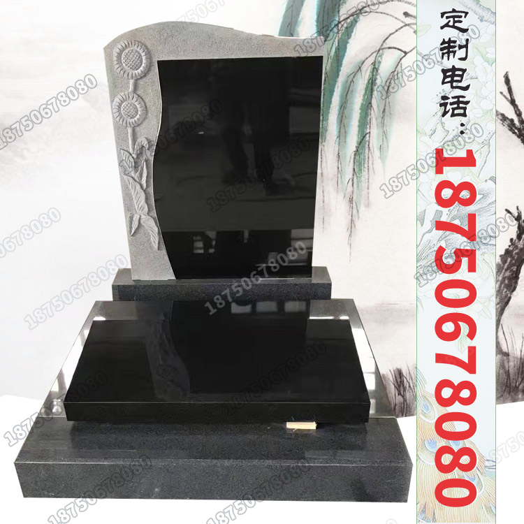 我厂雕刻的这款全山西黑花岗岩石雕艺术墓碑,石材优质,工艺精美。采用圆雕和线雕技艺相结合,浮雕菊花的纹饰颠覆了人们对墓碑的固闭影响,一派生气。山西黑深色系的石材,又凸显出墓碑的沉稳大气,稳重,受到国内各大陵园公墓的热订,是比较受欢迎的火葬墓碑款式。