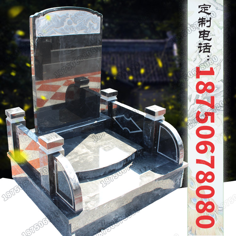造型简单大气。采用全山西黑花岗岩石材,主碑板造型较为规则,上部雕刻浮雕龙凤,寓意美好。栏杆极其它部分规则,简洁,使得整套墓碑沉稳又不失大气,清新自然,深受各地人民喜爱。各大陵园争相定制款项。