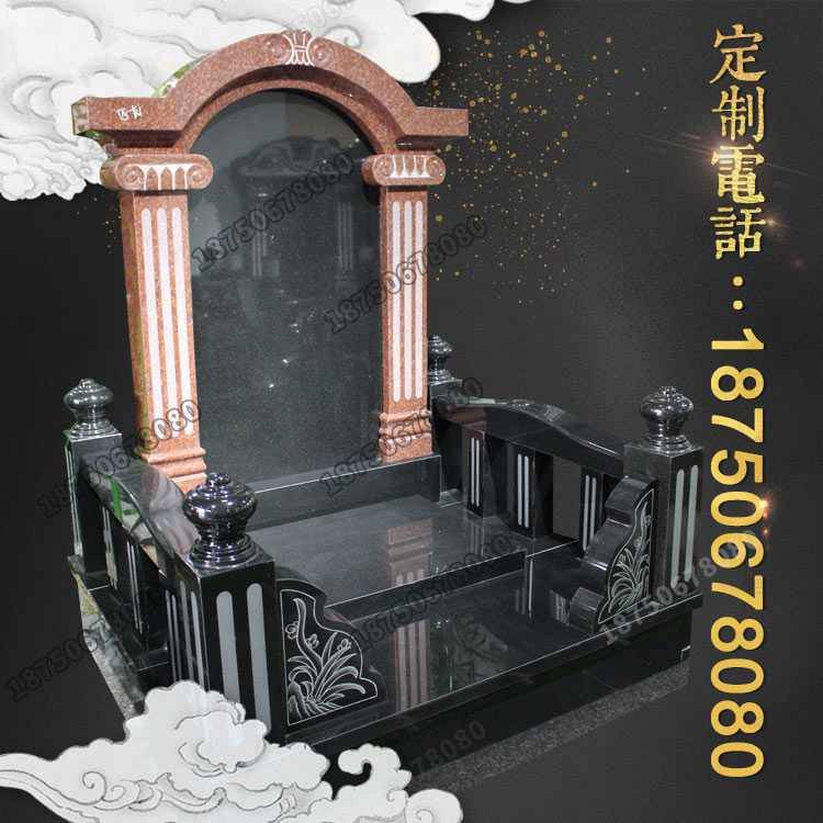 款式,受到中国大多数地区的喜爱。碑顶和碑柱是印度红石材,其他部件搭配山西黑花岗岩石材。