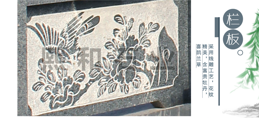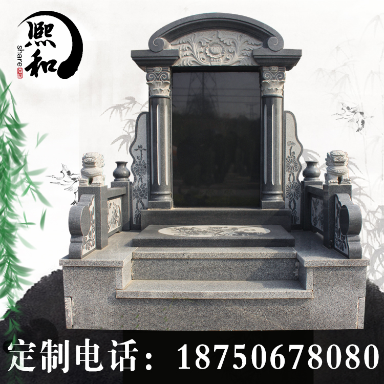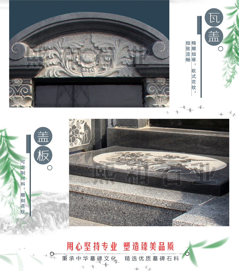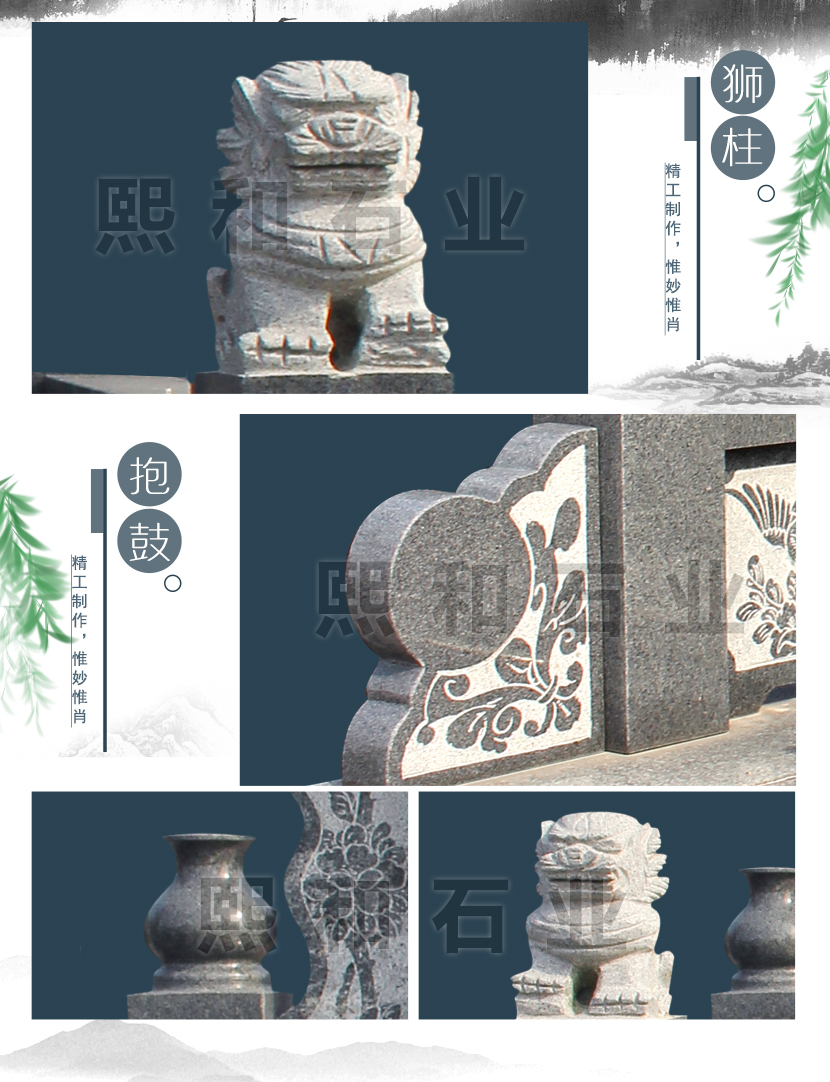 其中,主碑板、盖板和栏板都是使用山西黑,其他部件均为芝麻白。