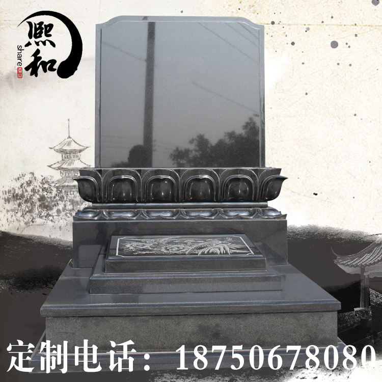 墓碑所使用的材料是山西黑。款式简单素雅,庄重大方,盖板上雕刻鸟语花香。墓碑碑板长0.6米高0.95米,加上碑柱两侧的碑耳和下沉的台阶,墓碑整体造型设计非常和谐统一,整体美观度极佳。墓碑整体长1米宽1.2米,高1.5米。盖板为山西石材,雕刻精美花纹。当然,这些碑型也是我们结合前人的智慧和客户对于传统文化寄托的需求,不断的深化和优化得到的成果,希望以此给逝者最好的归宿。