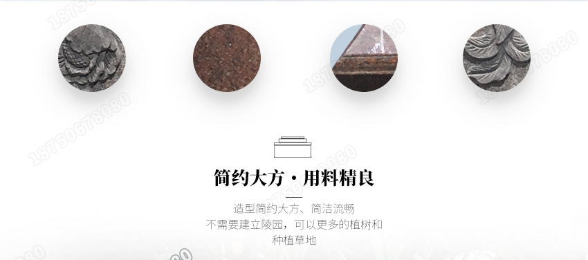 此款云南芒市墓碑碑型不论是用材上,还是整体造型及元素上,都比较“新式”,整体造型简洁大方,清新典雅,一般在现代陵园中相对使用较多。
